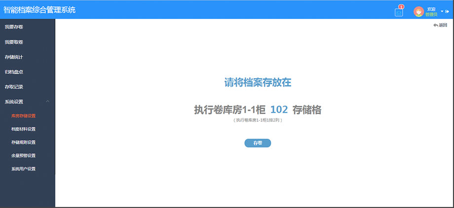 系统根据自定义存储方案对各类型档案进行储位智能推荐,减轻人工梳理档案存放位置的工作量,便于后续档案查找取卷,大大提升了档案归档入库工作效率。