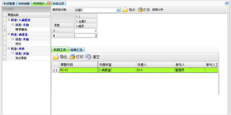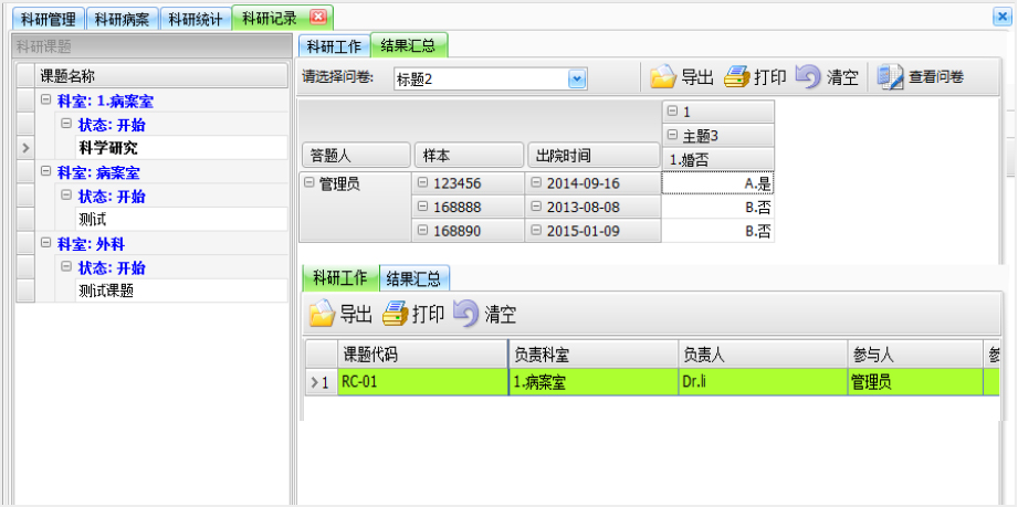 科研管理 科研病案 科研记录 科研统计